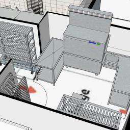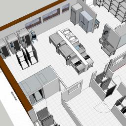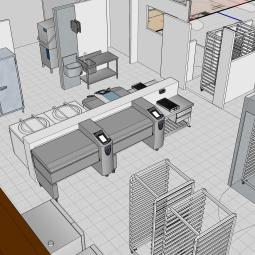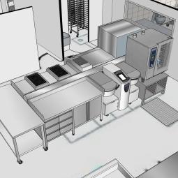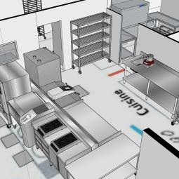 - une projection en 3D avant travaux de cuisine ou lieu de distribution de repas,